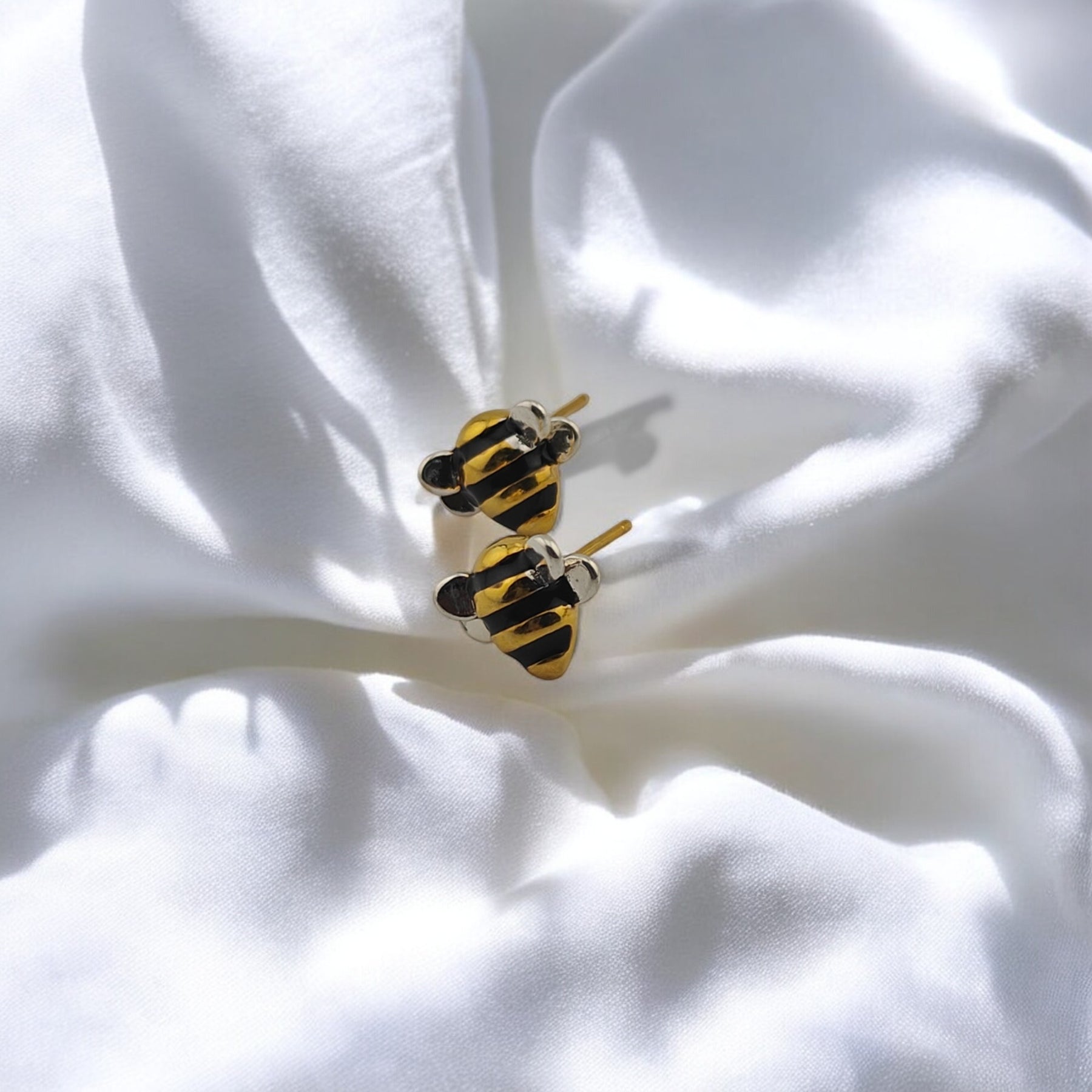 Features: Lightweight bee-shaped studs, detailed enamel work, secure push-back closure