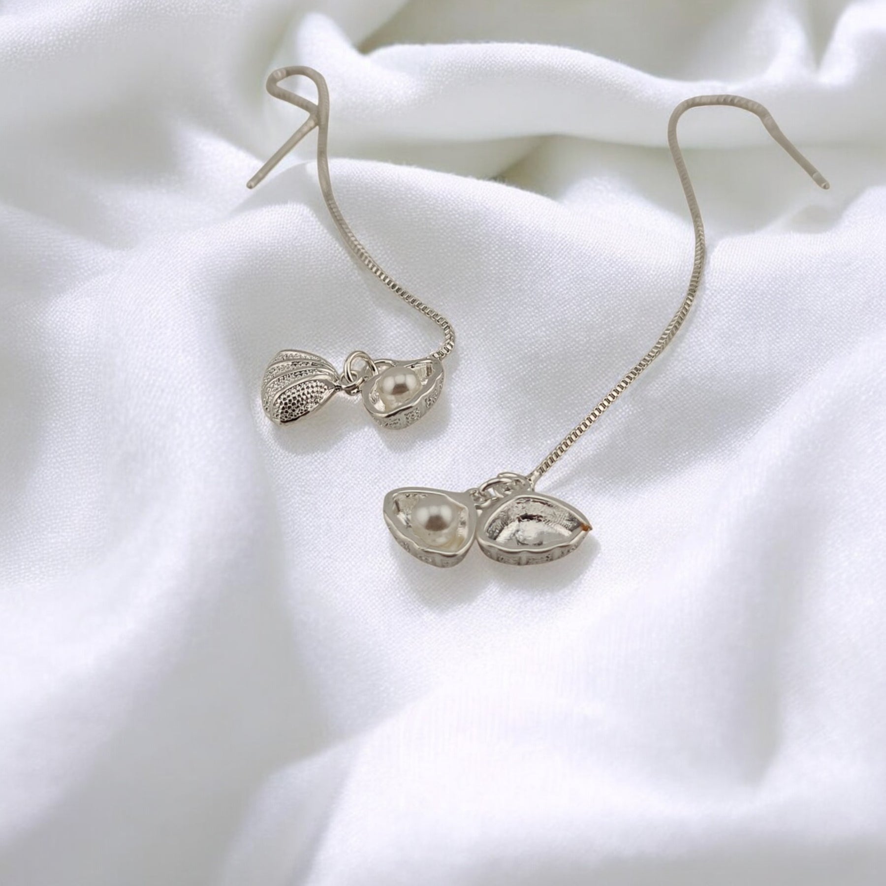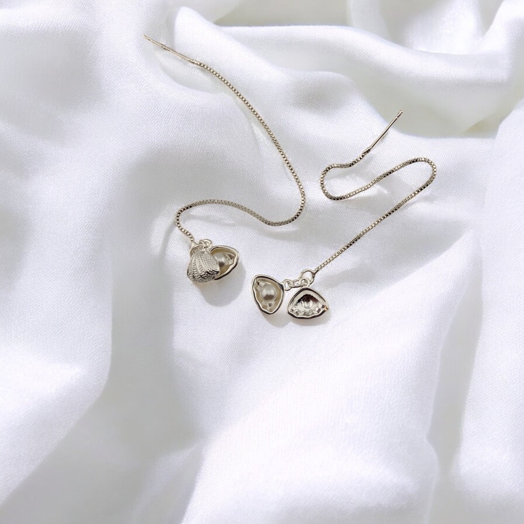 Features: Lightweight threader design, dangling seashells with fine detailing, and a lustrous pearl centerpiece.