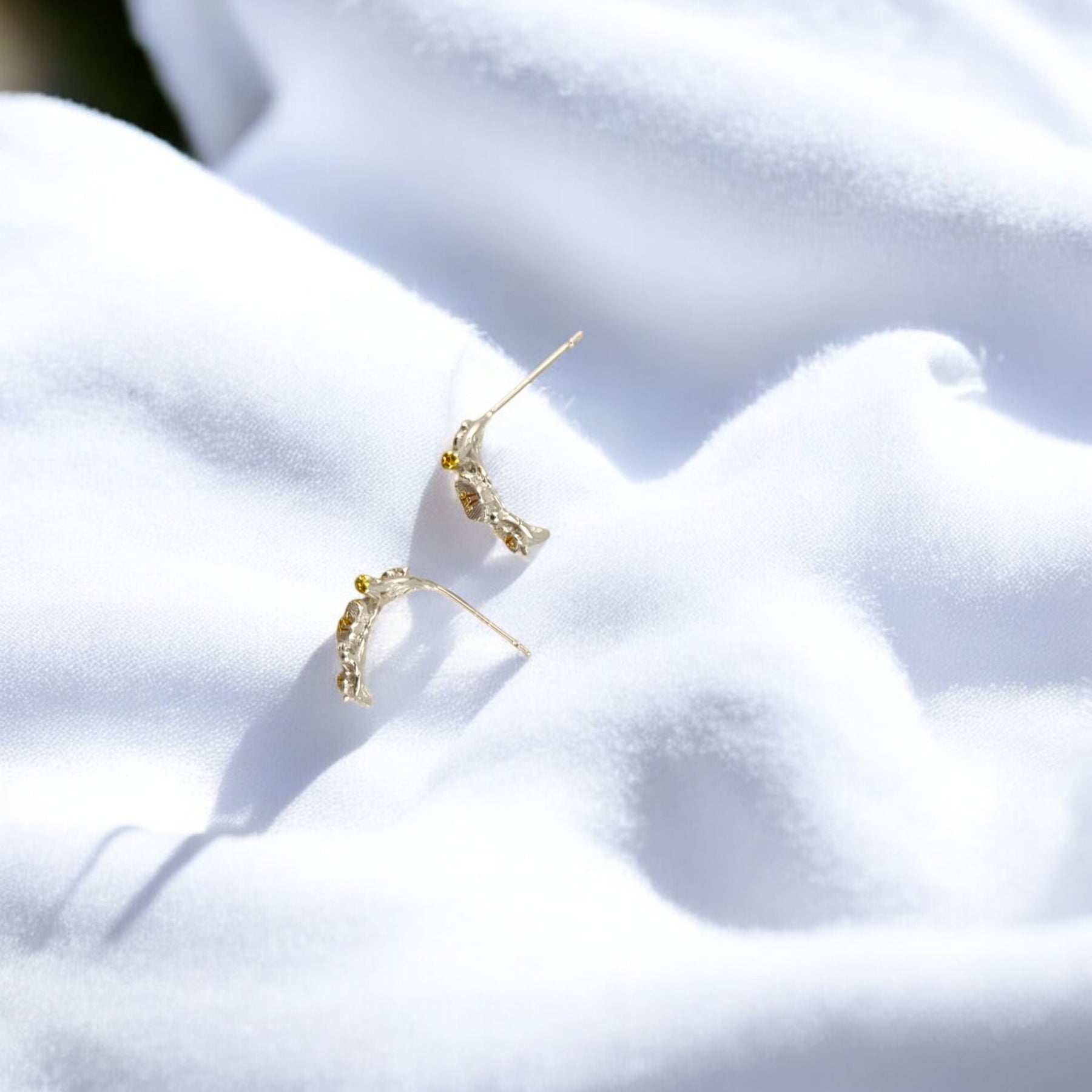 Features: Unique ear-climber design with engraved flower textures and dotted bead tips for a delicate, nature-inspired look